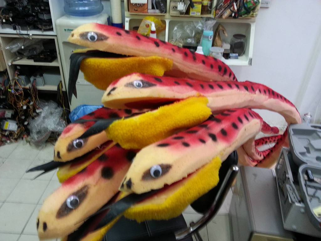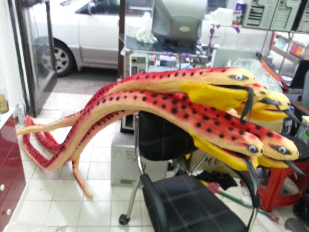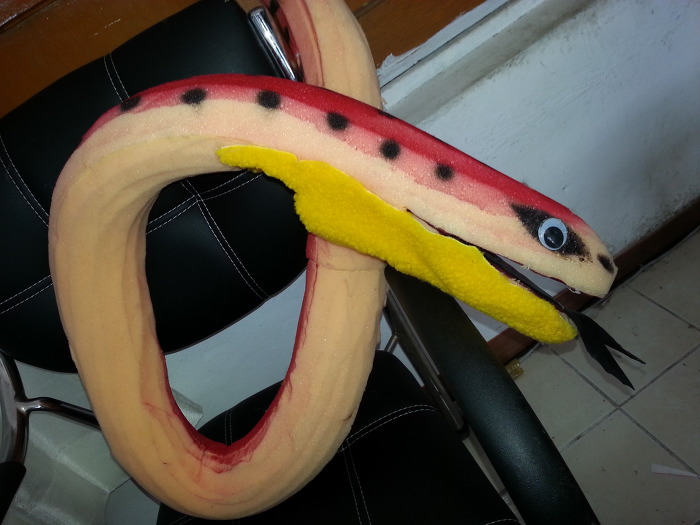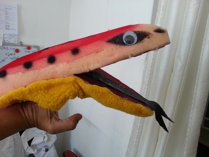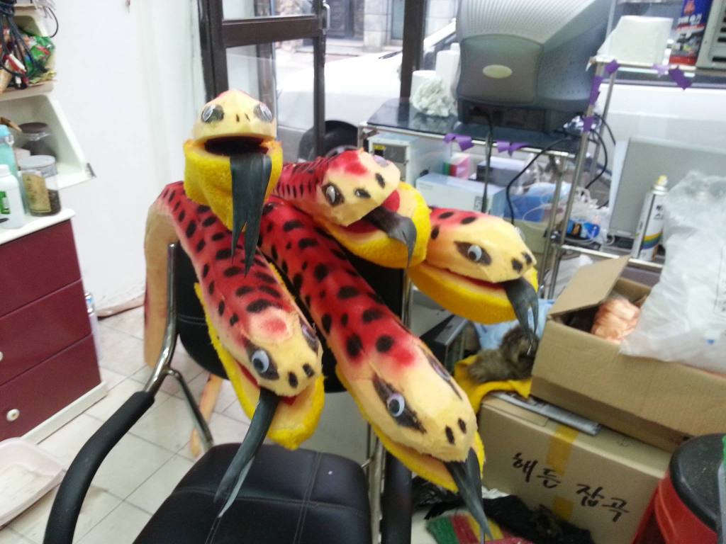 제 인형극에는 뱀이 많이 나옵니다. 두통이의 마음에 거짓말 마귀로, 부자와 나사로에는 지옥속에서 부자를 괴롭히는 악역으로 순이와 어머니에서는 처마밑으로 떨어져 죽는 구렁이로.... 쇼킹이 있어야 감동이 있습니다.