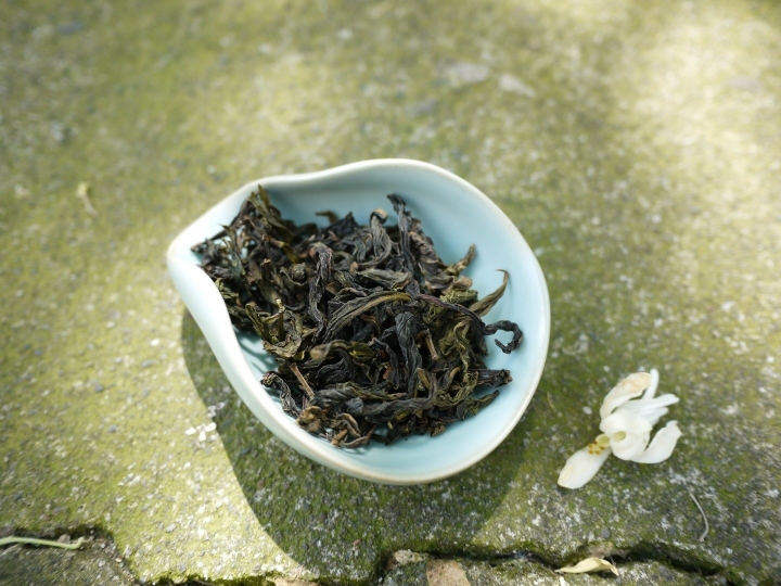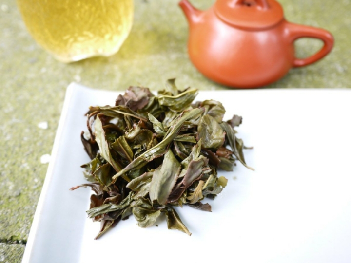 반발효차(半醱酵茶)중에서도 20% 이하로 낮게 발효를 시킨 관계로 찻잎은 검은 녹색에 약간의 비취색(翡翠色)을 띠고 있으며, 표면이 선명하게 광택이 나고, 회백색의 반점이 있습니다.