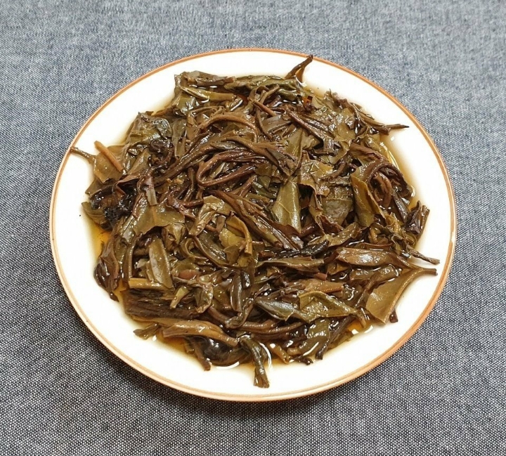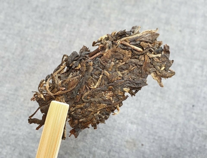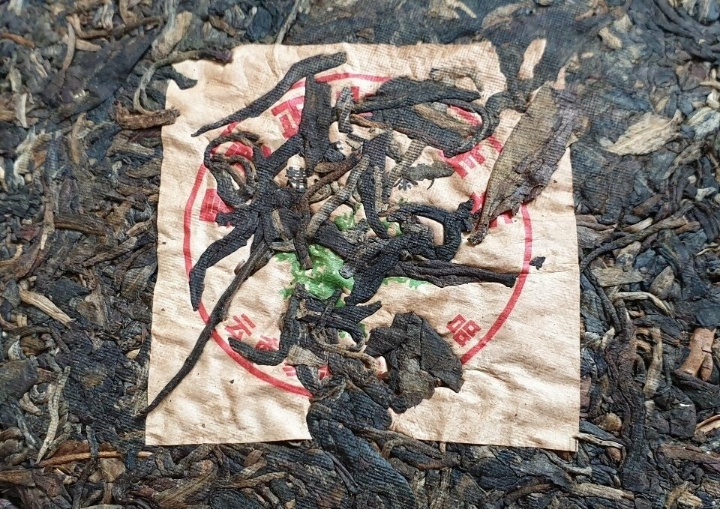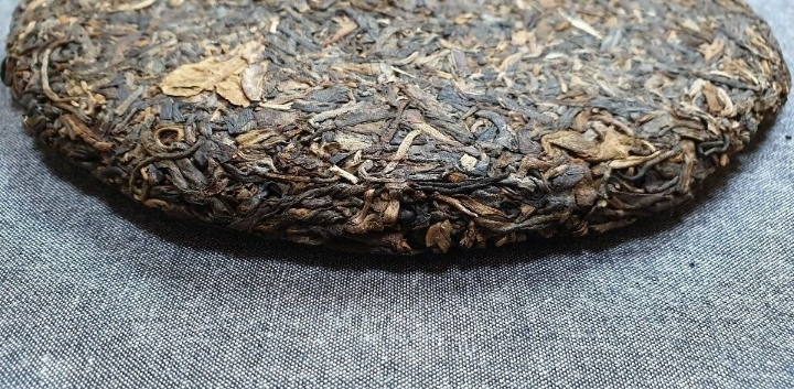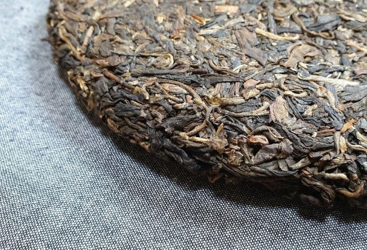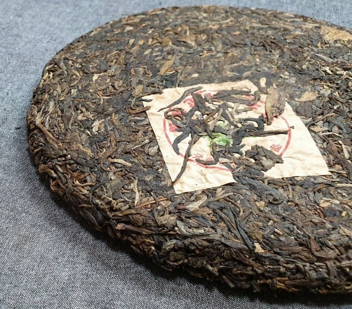 포장지를 벗겨 차의 병면을 보면 백호(白毫)도 간간히 보이며 17여년의 세월 동안 잘 숙성이 되었다는 것을 확인할 수 있습니다.