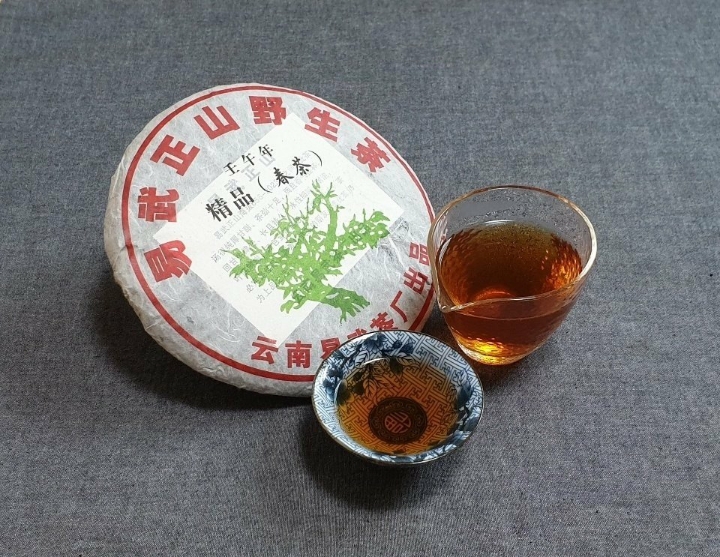 2002년에 생산된 이무정산야생차(易武正山野生茶)입니다.