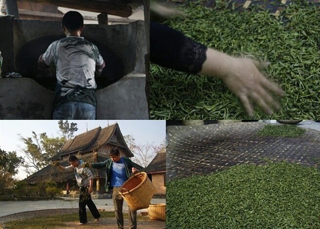 보이차에서 일광건조를 시킨 차를 모차(毛茶)라고 부릅니다.