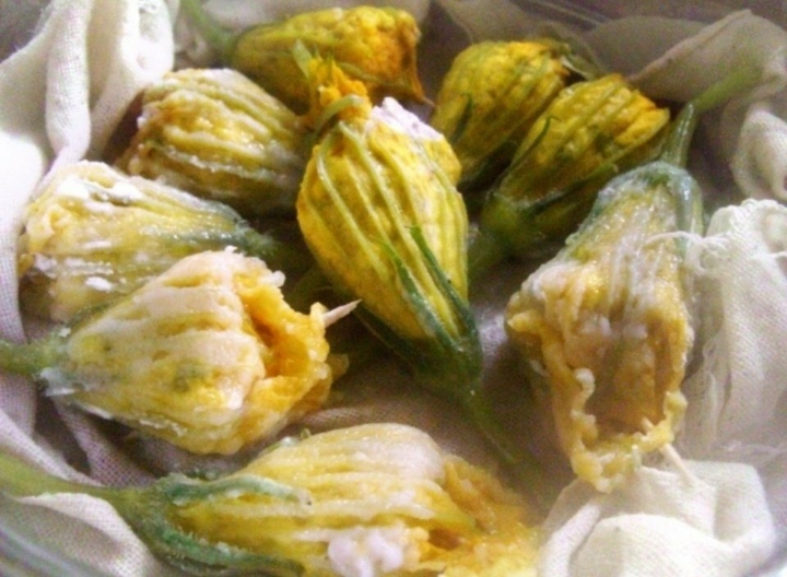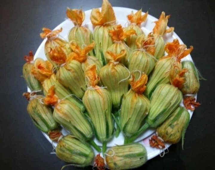 1.호박꽃이 활짝 피기전의 싱싱한 꽃잎을 흐르는 물에 씻습니다.