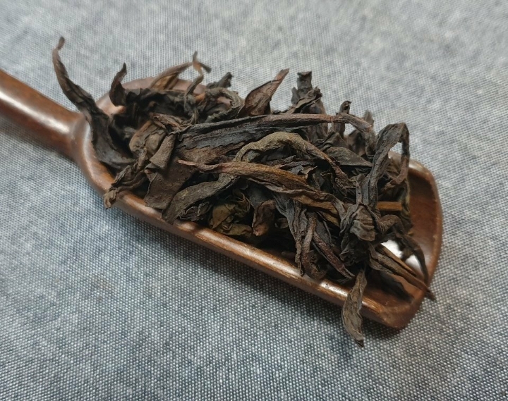 포장지를 열어 찻잎을 보면 색상은 흑갈색으로 약간 윤이 나며 외형이 튼실하고 주름이 보이며 끝은 살짝 말려 있습니다.