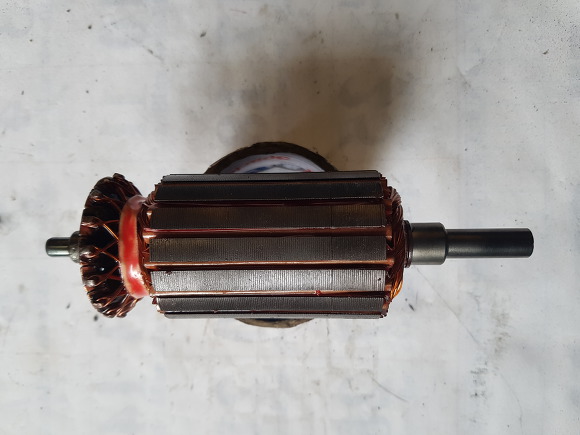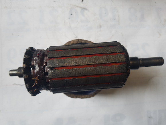 윈치모터를 받아서 점검을 해보니 아마추어가 열을 받아서 선이 절단이 되었으며 타버혔습니다. 부식도 심했으며 브러쉬도 작동을 하지를 않았습니다. 아마추어를 손으로 다시 감는 재생을 하였으며 기타부품을 수리를 하고 조립을 하였습니다.