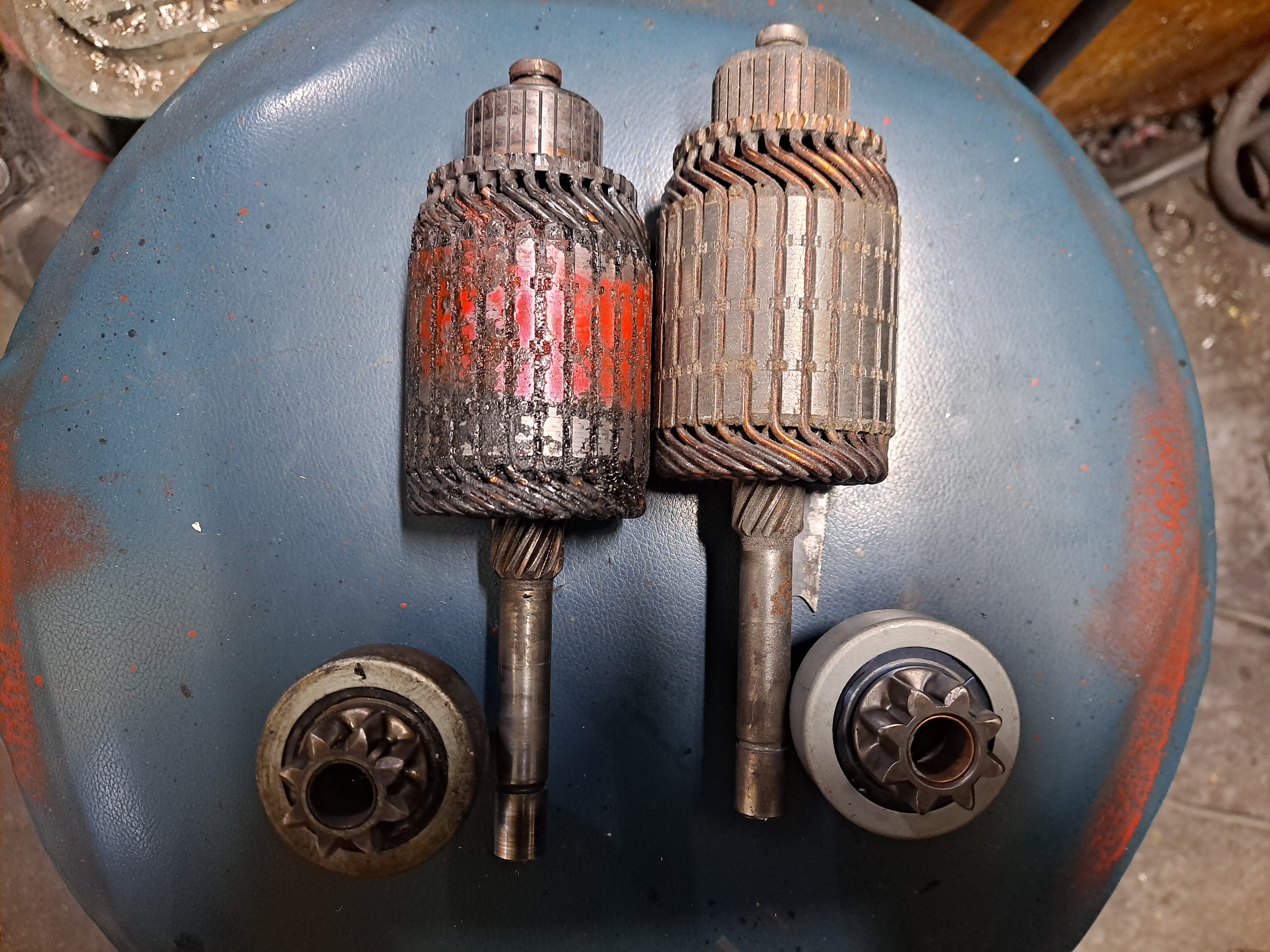 얀마 미니굴삭기 세루모터를 분해를 하니 마그넷트를 무리하게 조여서 캡이 돌아가면서 에나멜 코일선이 절단이 되엇으며 밴딕스기어가 불량이고 하우징과 리어카바의 붓싱도 불량이라서 아마추어도 열받아서 타 버렸습니다.