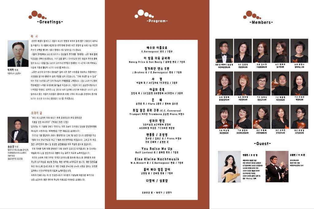 2020년 1월에 창단하였으며, 코로나로 인해 창단연주회를 2023년도에 하게 되었습니다.