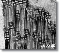 수직(垂直)준 겸재 정선이 개발한 한국형 준법으로써 금강산 총석정이 대표적인 그림이다.