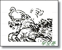 ▶고루(고루)준 고루(고루)준은 운두(雲頭)준과 탄와(彈渦)준과 거의 같은 요령으로 그리게 되나 차이점은 준을 표현한 뒤에 점을 찍어준다.