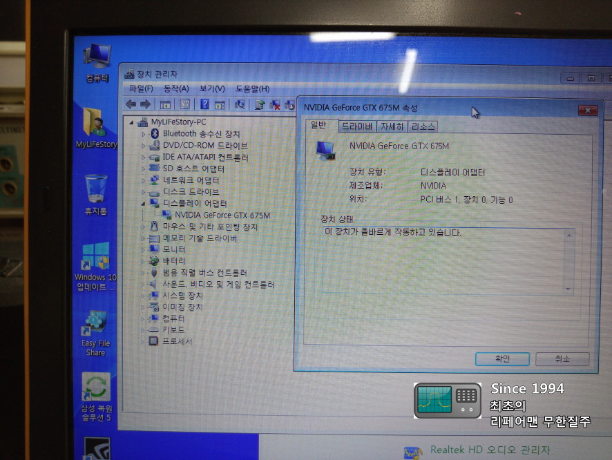 NVIDIA Geforce GTX 675M 드라이버는 정상 동작을 합니다.