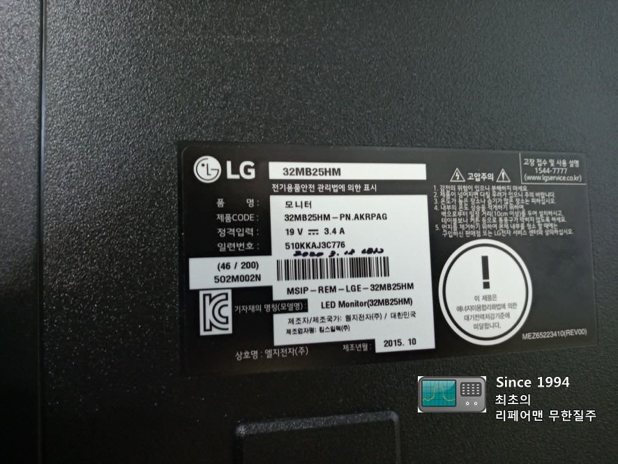 고장 증상은 엘지 32인치 LED 모니터 32MB25HM 희미한 엘지 로고만 보입니다.