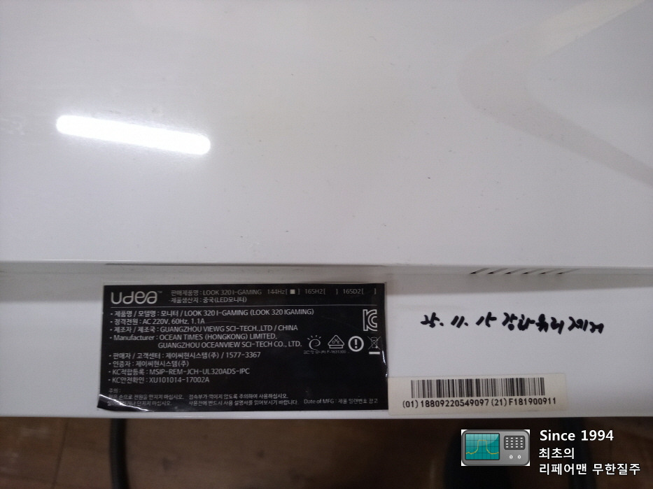 대구지역 pc방에서 사용한 모니터 유디아 32인치 게이밍 모니터입니다.