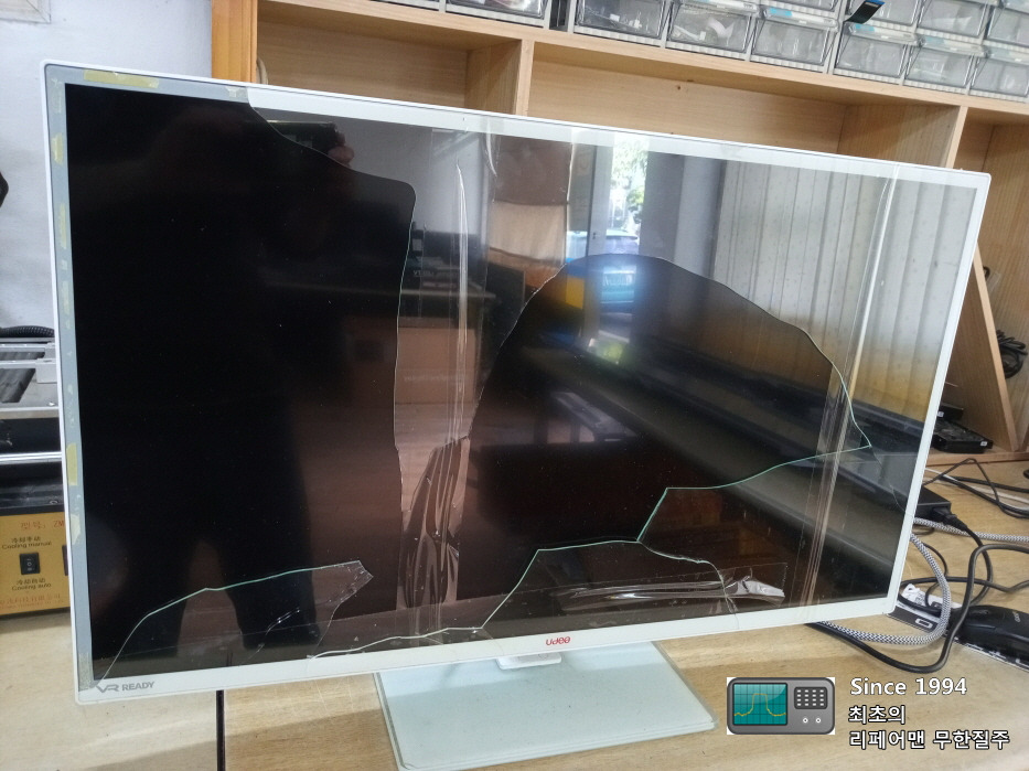유리가 깨진 부분을 모두 제거해야 모니터를 사용할 수 있습니다.