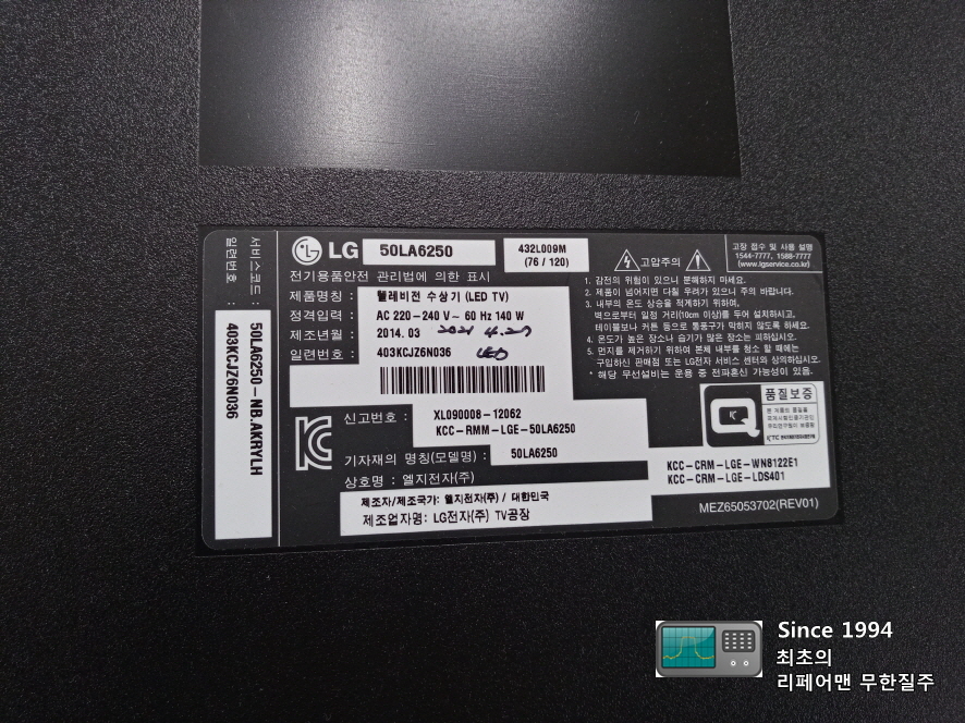 백라이트 고장으로 수리한 엘지 50인치 LED TV입니다.