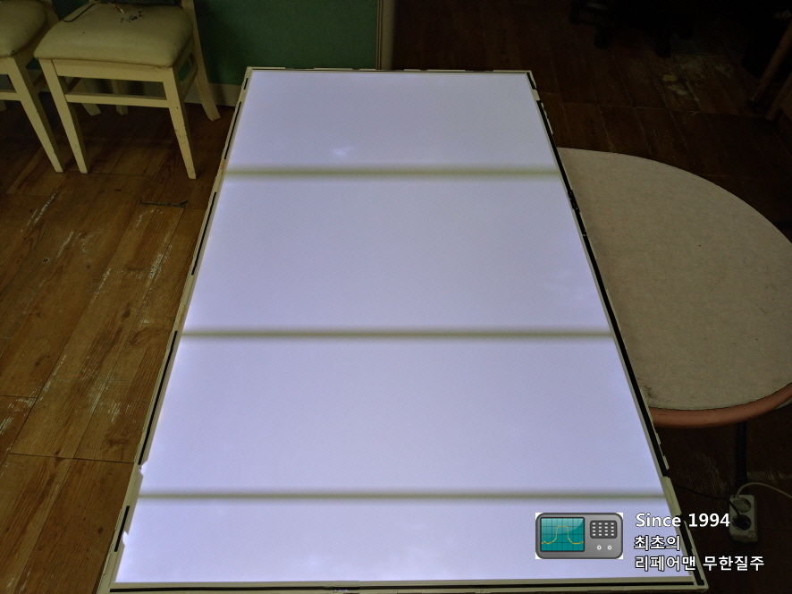 자가 수리를 할려고 LED 백라이트 자재를 인터넷으로 구입 후 교체했는데 이런 증상 발생했다고 하시네요