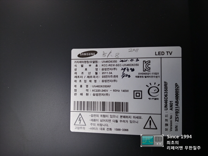 삼성 UN46D6350 LED TV 수리 한 사례입니다.