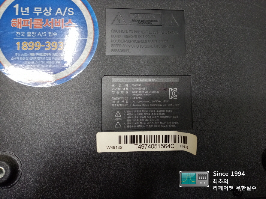 디엘티 시네 eye 49" 텔레비전 수상기 수리 사례입니다.