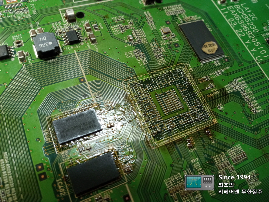 LG 47LW6500 모델에 장착된 보드에서 주로 발생하는 블랙아웃입니다.