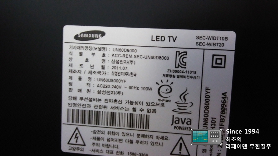 대구에서 맡겨준 TV는 삼성 60인치 LED TV기종입니다.