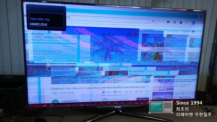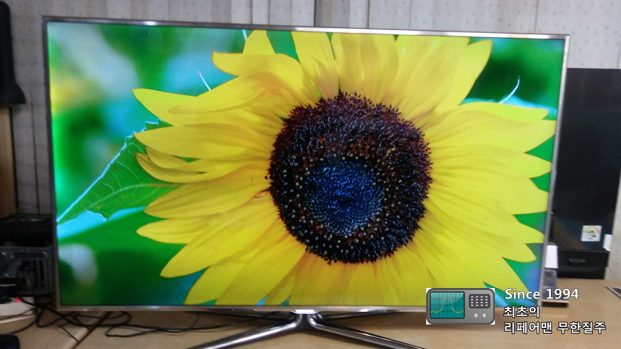 삼성 UN60D8000 모델 고장증상은 영상이 일그러지고 백라이트까지 꺼졌습니다.