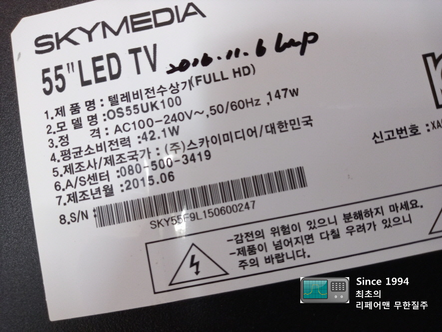 스카이 미디어 55인치 LED TV 수리 한 사례입니다.