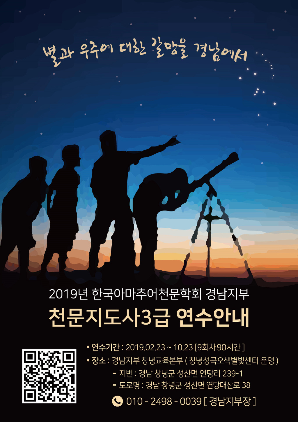 2019년 경남지부 천문지도사 3급7기 자격연수 안내