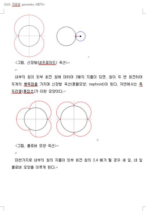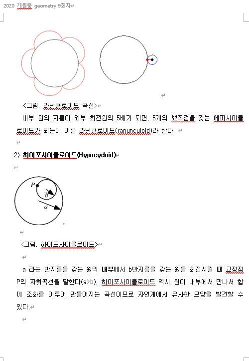 오늘부터는 동아리 발표회 대비를 위해서 손으로 쓰지 않고, 함께 모여 노트북상으로 자료를 작성하기로 하였다. 오늘은 몇몇 사이클로이드 곡선들에 대해 심도 있는 탐구를 해보는 시간을 가졌다. 보고서 형식으로 정리해 보았다.