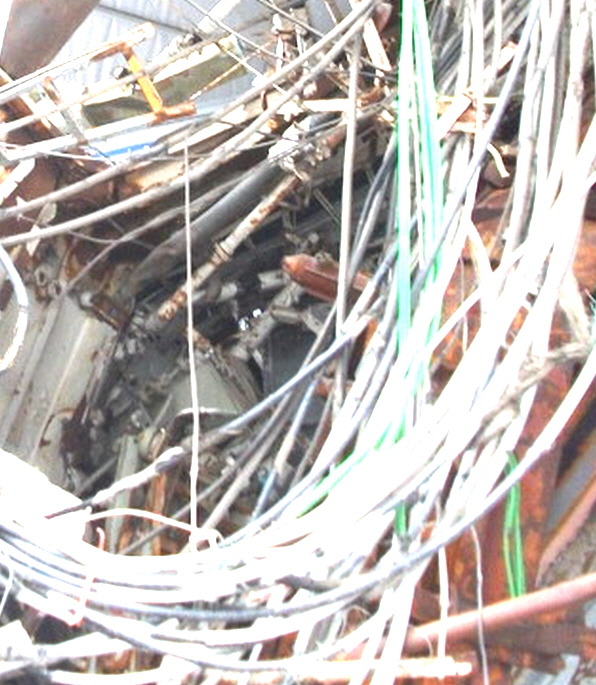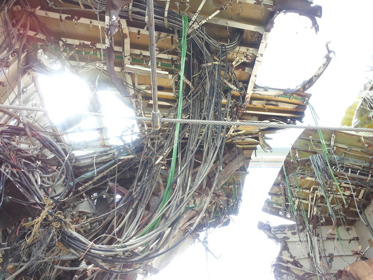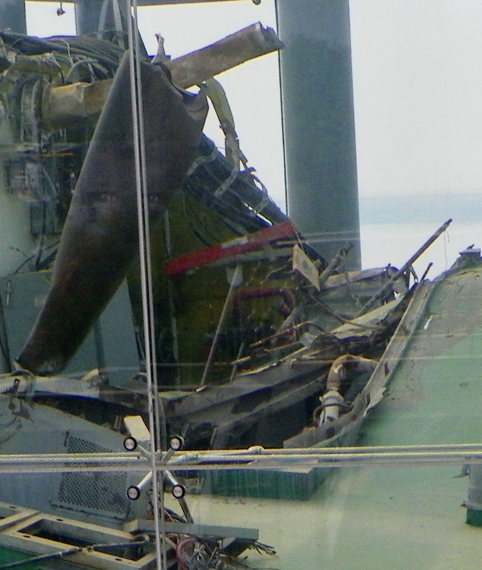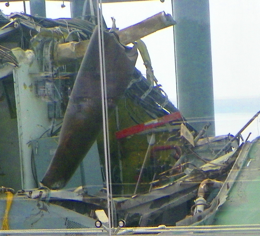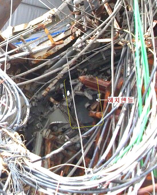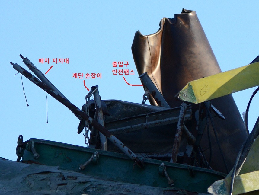 두번째 위 가스터빈실 출입계단의 첫번째 발판이 뒤집혀 있는데 이것은 아래 사진에서 철판무늬가 거꾸러 찍힌데서도 확인된다.