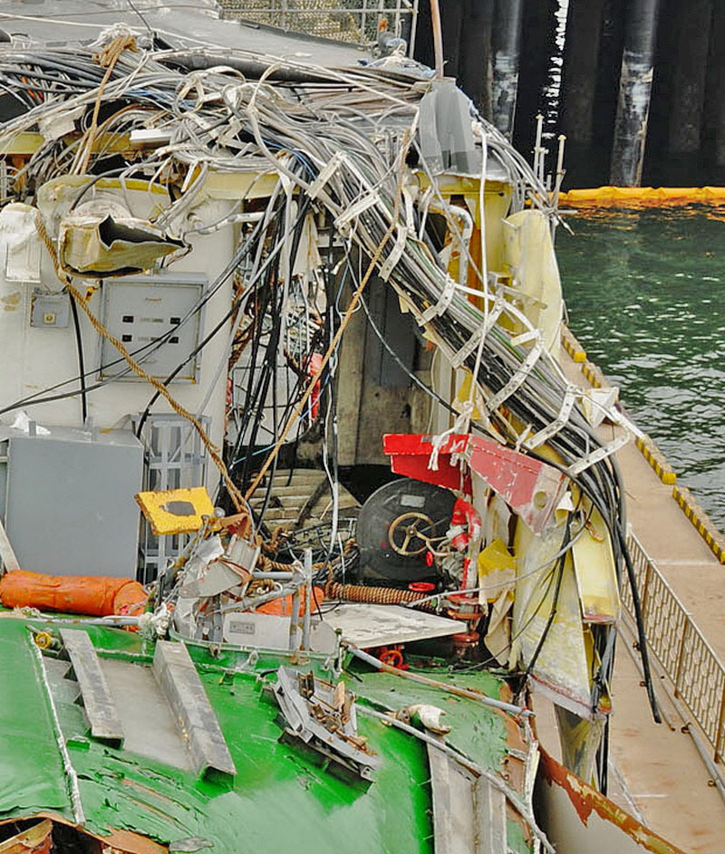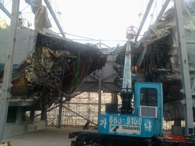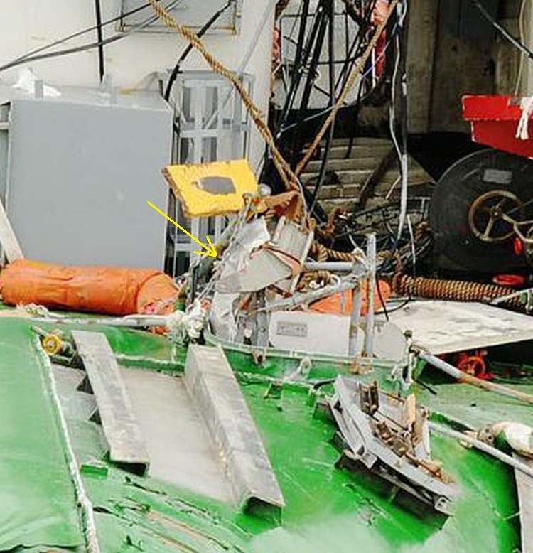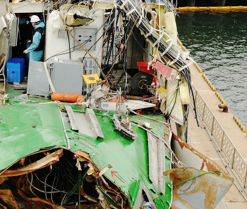 '함미 절단면 치솟아 오른 환기구 어디로 갔나?2014. 1. 21. 여기에 고화질 파일 있음. 추가 2014. 1. 28.