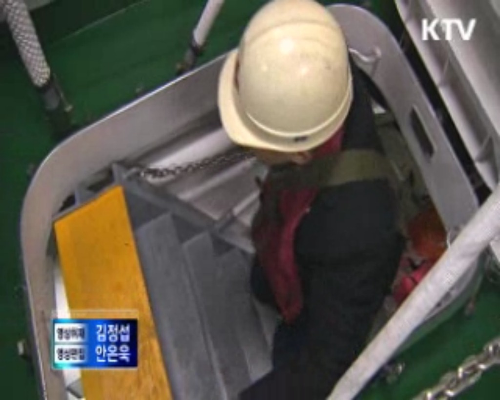 (아래) 안전팬스는 탈부착식이다. / 성남함(PCC-775) 계단 안전팬스