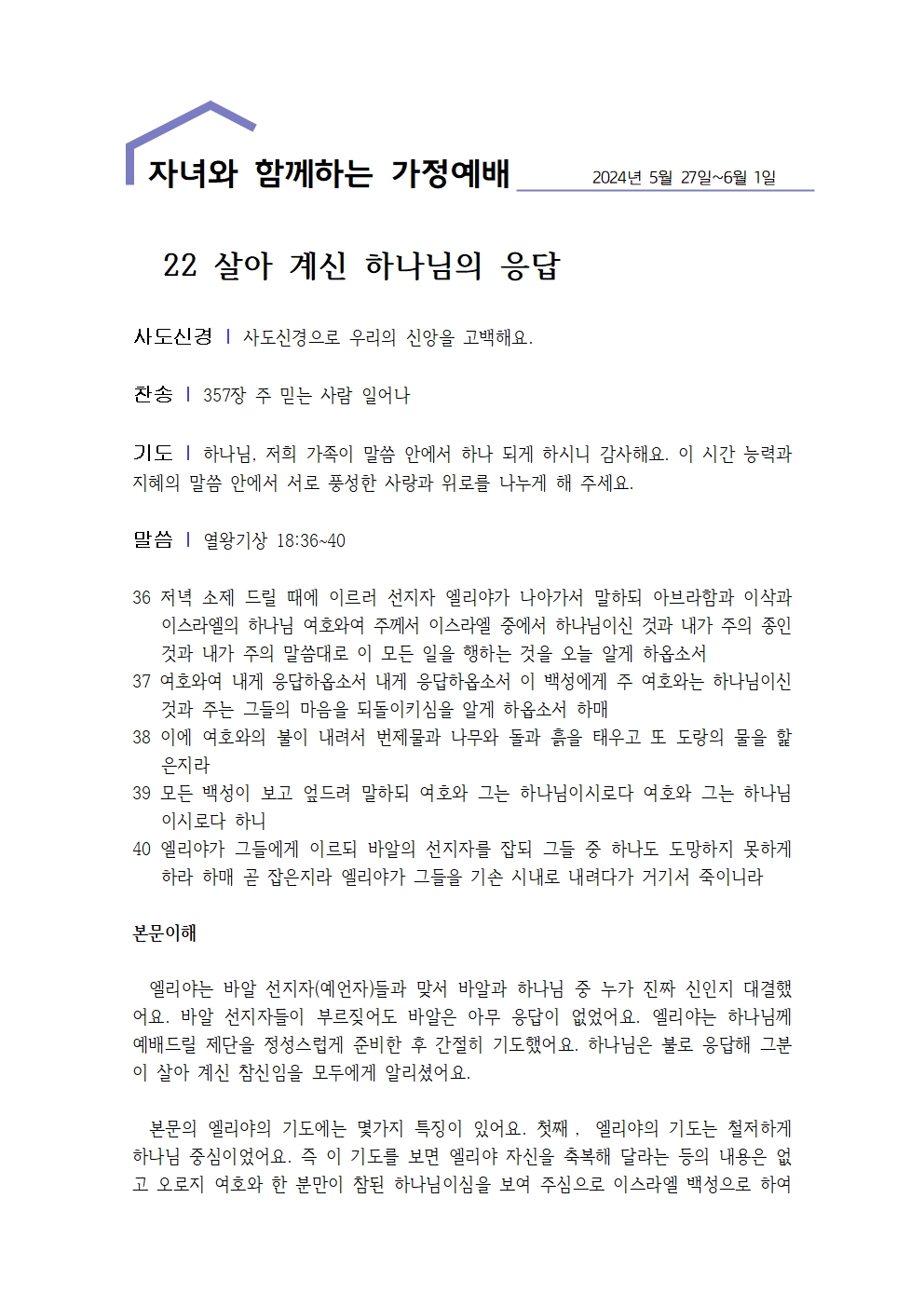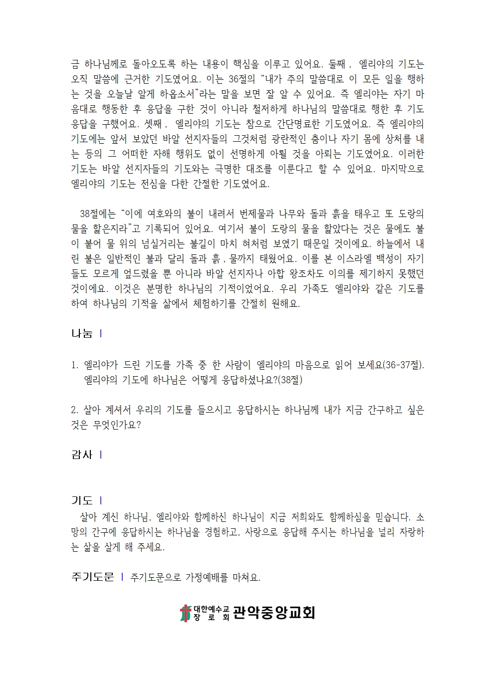 2024년 22주차 가정예배 순서지 작성자관악중앙교회|작성시간24.05.26|조회수39 목록 댓글 0 글자크기 작게가 글자크기 크게가 다음검색 현재 게시글 추가 기능 열기 북마크 공유하기 신고 센터로 신고 댓글 댓글 0 댓글쓰기 답글쓰기 댓글 리스트