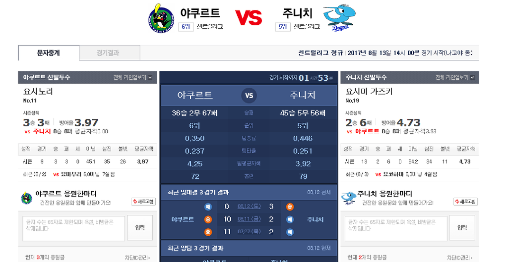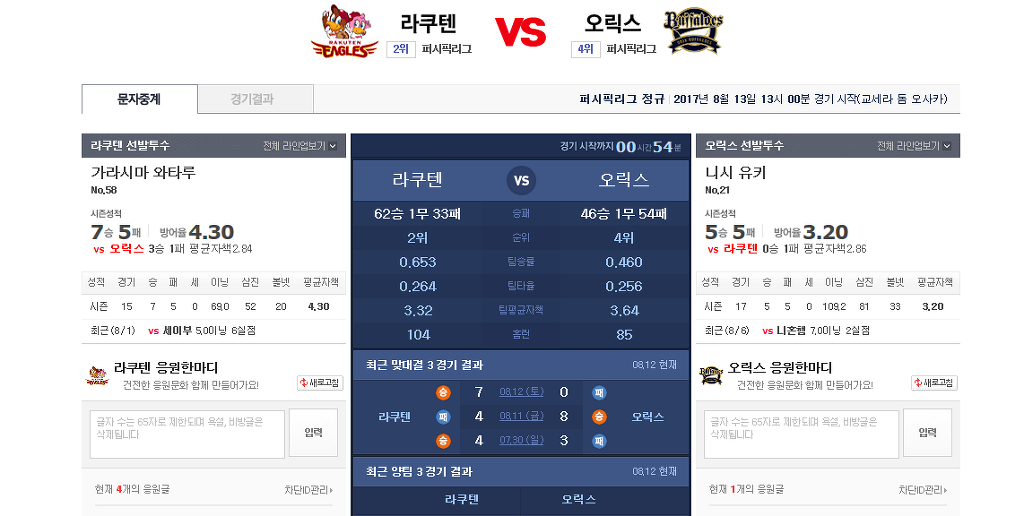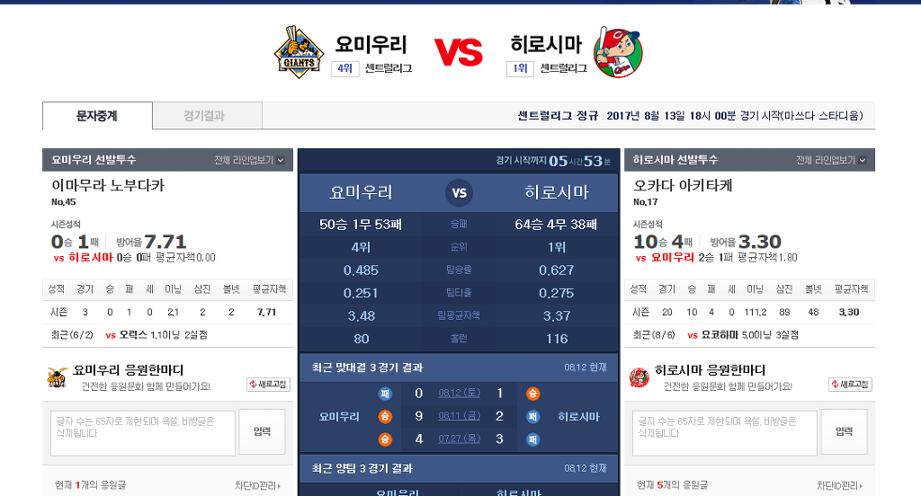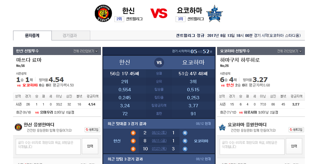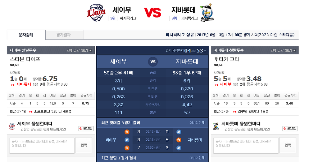 2017-0813 NPB 일본야구 선발 정보 작성자쫑순이기사단|작성시간17.08.13|조회수10 목록 댓글 0 글자크기 작게가 글자크기 크게가 다음검색 현재 게시글 추가 기능 열기 북마크 공유하기 신고 센터로 신고 댓글 댓글 0 댓글쓰기 답글쓰기 댓글 리스트