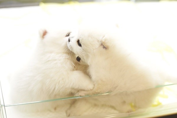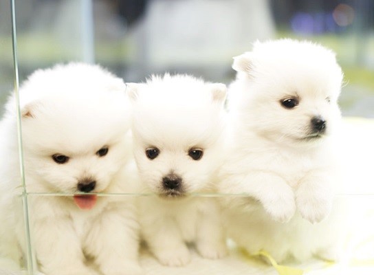 생긴 강아지 스피츠 아이들이에요!! 새하얗고풍성한털로
