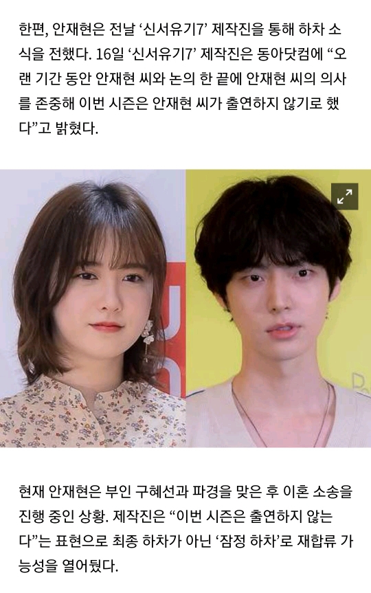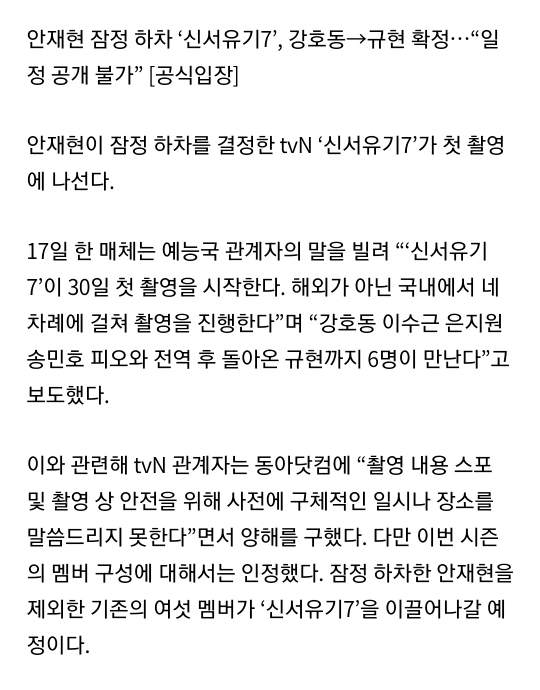 [동아일보]안재현 잠정 하차 '신서유기7', 강호동→규현 확정.."일정 공개 불가" [공식입장] 작성자호동이의힘[혜진]|작성시간19.09.17|조회수286 목록 댓글 2 글자크기 작게가 글자크기 크게가 https://entertain.v.daum.net/v/20190917092117709 다음검색 현재 게시글 추가 기능 열기 북마크 공유하기 신고 센터로 신고 댓글 댓글 2 댓글쓰기 답글쓰기 댓글 리스트 작성자호동이의힘[꼬쿠] | 작성시간 19.09.18 나영석피디님을 비롯해서 제작진분들이 끝까지 같이가려는 의리가 있으신거 가타요~~어찌됬든 신서유기 홧팅입니다!!!>.< ~~일정공개를 하지 않아서 더 기대되네용!!ㅋㅋ 답댓글 작성자호동이의힘[혜진] 작성자 본인 여부 작성자 | 작성시간 19.09.22 어찌됬든 볼수있게되서 얼마나 다행이던지ㅠ 전 내년으로 미뤄지는거 아닌가해서 조마조마햇네여ㅠ 댓글 전체보기