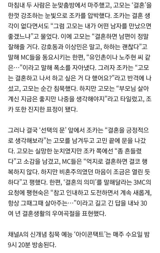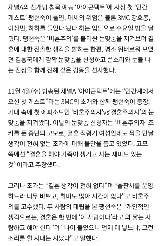[경향신문]'아이콘택트' 중년 고모×조카, '결혼' 두고 팽팽한 설전 작성자호동이의힘[혜진]|작성시간20.11.06|조회수41 목록 댓글 0 글자크기 작게가 글자크기 크게가 https://entertain.v.daum.net/v/20201105085904753 다음검색 현재 게시글 추가 기능 열기 북마크 공유하기 신고 센터로 신고 댓글 댓글 0 댓글쓰기 답글쓰기 댓글 리스트