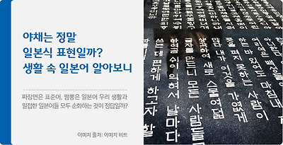 우리나라 말에서는 한자어의 비중이 매우 높습니다. 이 한자어는 중국식 한자어와 일본식 한자어 등이 섞여 있고 그 과정에서 아름다운 순우리말보다 이런 한자어를 더 자주 사용하는 경우도 많이 있습니다. 그러다 보니 일본식 한자어로 표현 된 단어가 우리말처럼 굳어지기도 하고 간혹 우리의 표준 단어가 일본어라는 오해를 받기도 하는데요. 가장 대표적인 예를 들자면, 바로 ‘야채(野菜)’를 꼽을 수 있습니다.