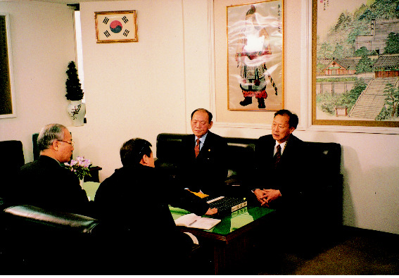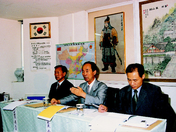 좌로부터 강정구(姜貞求,중앙종회 종무처장), 김규천(金奎天, 중국 심양대학교 사범대학 전학장, 명예교수), 강치원(姜治遠,강원대학교, 사학)교수 -
