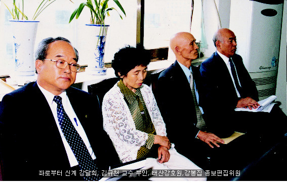작성자도희(都熙) 작성자 본인 여부 작성자 작성시간 12.06.21 1. 좌로부터 신계(新溪) 강달희(姜達熙), 김규천(金圭天, 연구발표자) 교수부인, 태산(太山) 강호원(姜鎬元,세미나개최 후원), 강봉집(姜鳳集) 종보편집위원