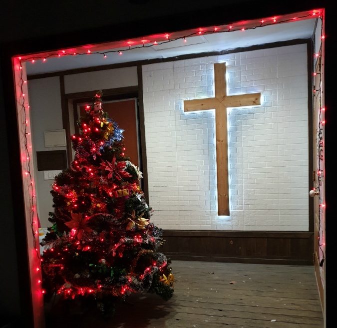교육관에 있었던 성탄나무, 반짝이, 여러 가지 성탄 장식품이