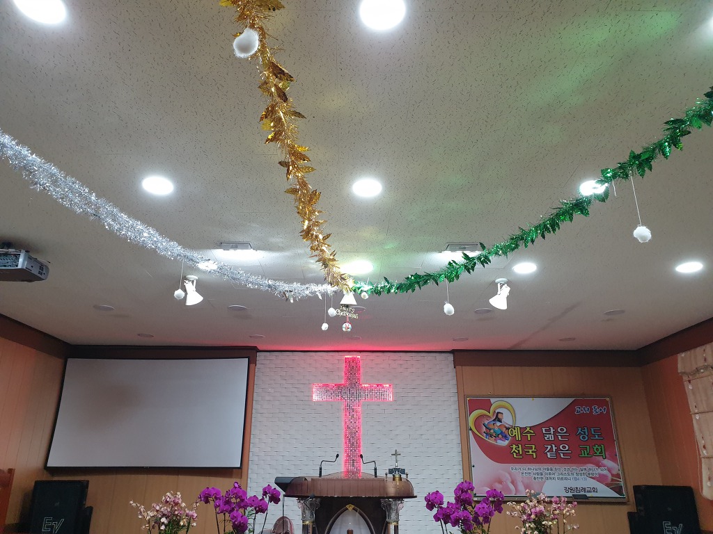 예배당 앞에서 뒷부분까지 멋지게 장식해 주셨구요.
