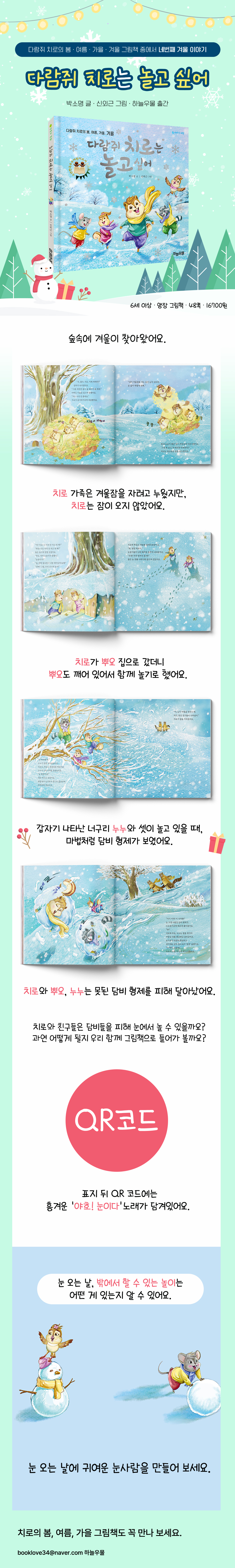 호기심이 많고 놀기 좋아하는 다람쥐 치로의 겨울 이야기가 펼쳐져요.