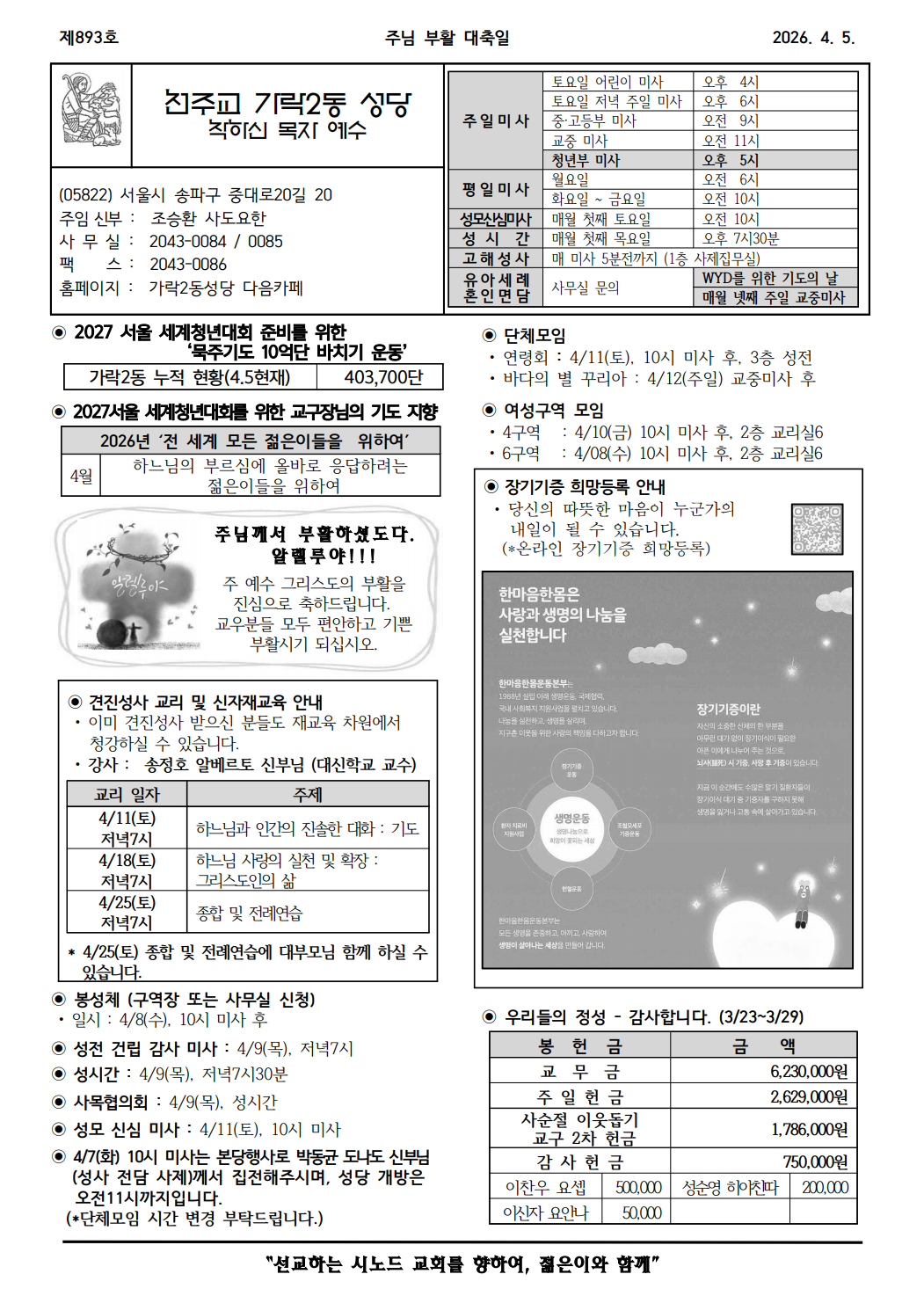 2026년 4월 5일 주보 작성자ALOHA|작성시간26.04.01|조회수243 목록 댓글 0 글자크기 작게가 글자크기 크게가 다음검색 현재 게시글 추가 기능 열기 북마크 공유하기 신고 센터로 신고 댓글 댓글 0 댓글쓰기 답글쓰기 댓글 리스트