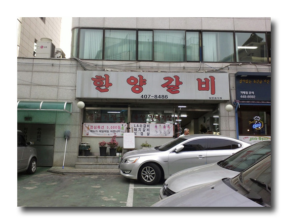 기다리다가 왠걸 ~회장님과 같이 걸어서 한양갈비집으로 갔다.