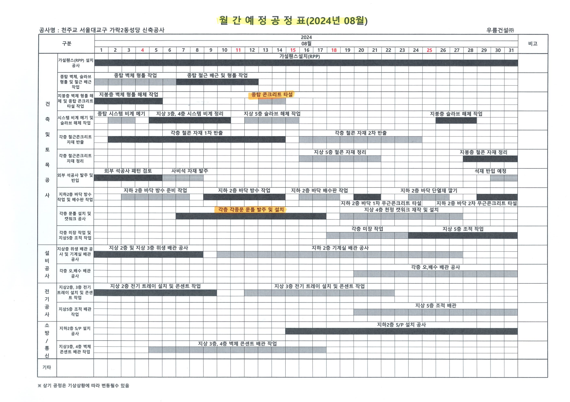 8월 월간 예정 공정표 작성자ALOHA|작성시간24.08.03|조회수560 목록 댓글 0 글자크기 작게가 글자크기 크게가 다음검색 현재 게시글 추가 기능 열기 북마크 공유하기 신고 센터로 신고 댓글 댓글 0 댓글쓰기 답글쓰기 댓글 리스트