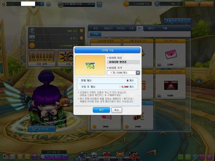 캐시는 5300원이고 코인은 68코인에 구입이 가능하니 참고바람