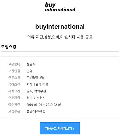 [buyinternational] : 의류 재단,삼봉,오바,미싱,시다 채용 공고 (~02/03) 작성자백송|작성시간19.01.04|조회수153 목록 댓글 0 글자크기 작게가 글자크기 크게가 자세한 정보 및 지원하기>>> http://joburl.kr/EGRT7 다음검색 현재 게시글 추가 기능 열기 북마크 공유하기 신고 센터로 신고 댓글 댓글 0 댓글쓰기 답글쓰기 댓글 리스트