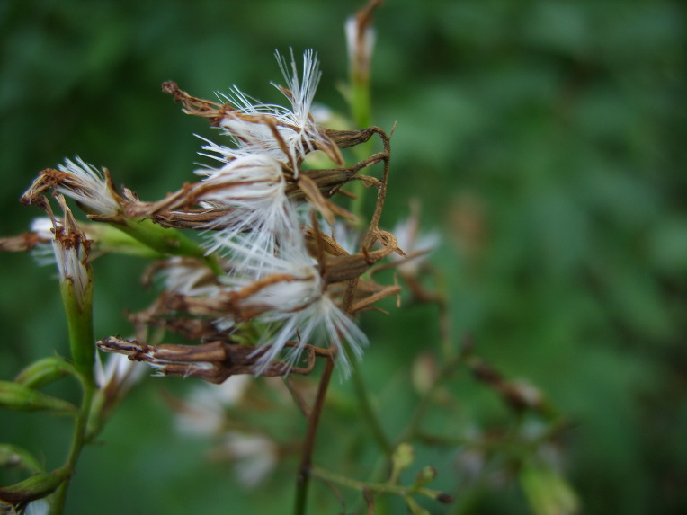 열매는 수과이고 줄 모양이며 줄이 있고 털이 없으며, 관모는 흰색이고 길이가 8mm이다.