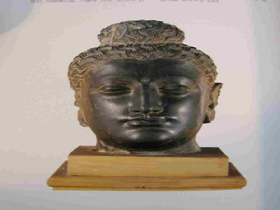 불두 머리부분만 40cmrk 넘는 이 초대형 불두는 원래 불입상으 부분이었을 것으로 추정된다. 간다라의 불교 미술 전성기에 제작된 초대형 불상은 예외 없이 입상이었기 대문이다. 원래 불입상은 높이가 3m가량 되었을 것으로 추정되는데, 간다라 불상 가운데에서 가장 큰 크기에 속한다.