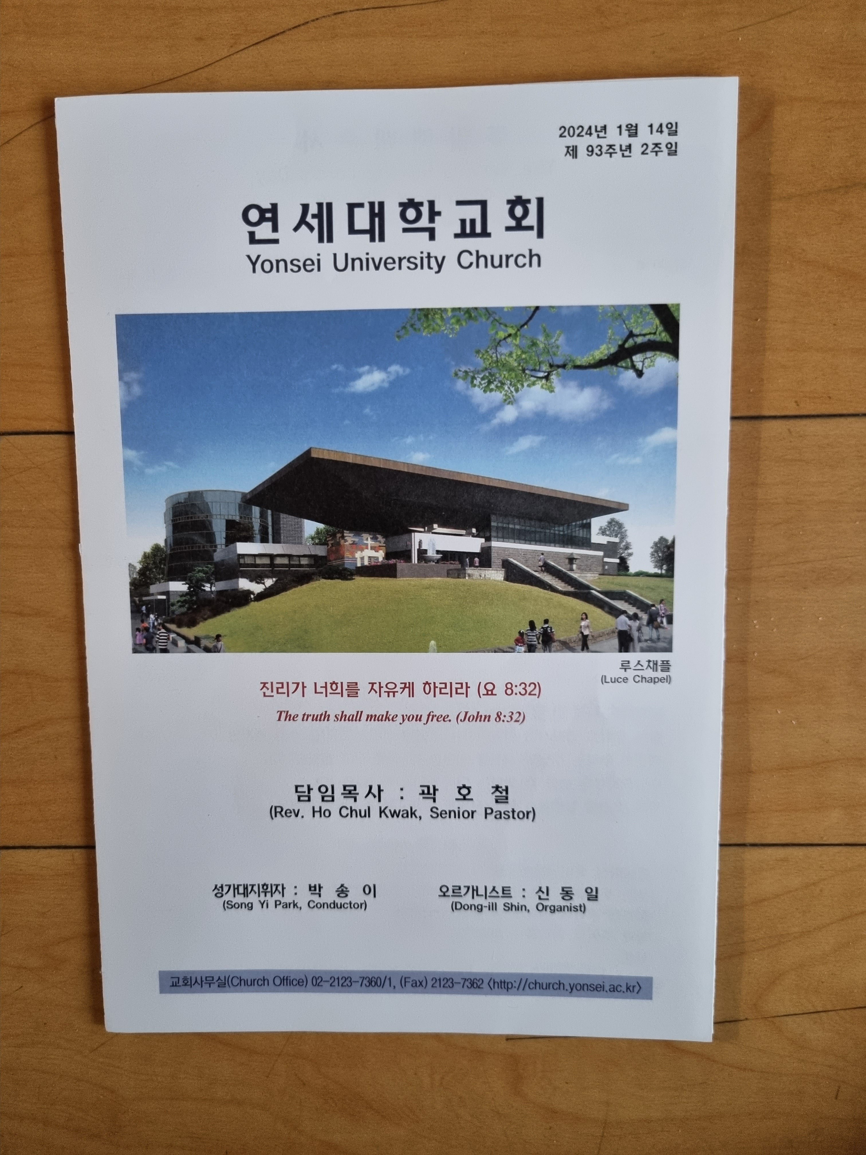 오늘(1월14일)은 주현절(Epiphany) 두 번째 주일이다. 연세대학교회 곽호철 담임목사(연세대 교목/교수)가 11시 예배를 인도했다. 필자는 집에서 온라인으로 주일예배를 드렸다.