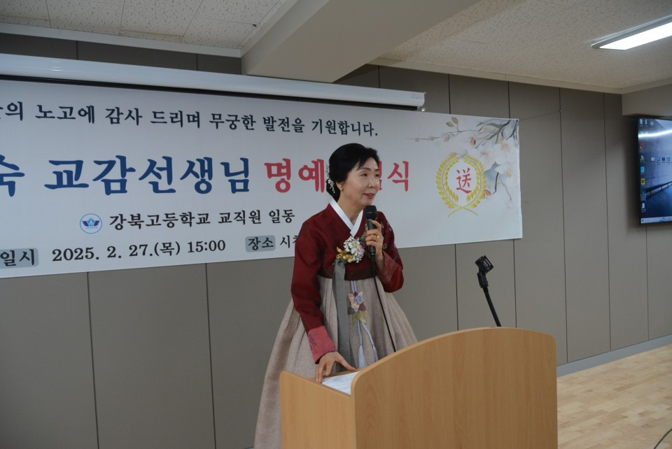 2025년 강북고등학교 윤희숙 교감 선생님 명예 퇴임식 사진 동영상 작성자김세동 6k5wdz|작성시간25.03.01|조회수281 목록 댓글 0 글자크기 작게가 글자크기 크게가 * 2025년 강북고등학교 윤희숙 교감 선생님 명예 퇴임식 동영상 다음검색 현재 게시글 추가 기능 열기 북마크 공유하기 신고 센터로 신고 댓글 댓글 0 댓글쓰기 답글쓰기 댓글 리스트
