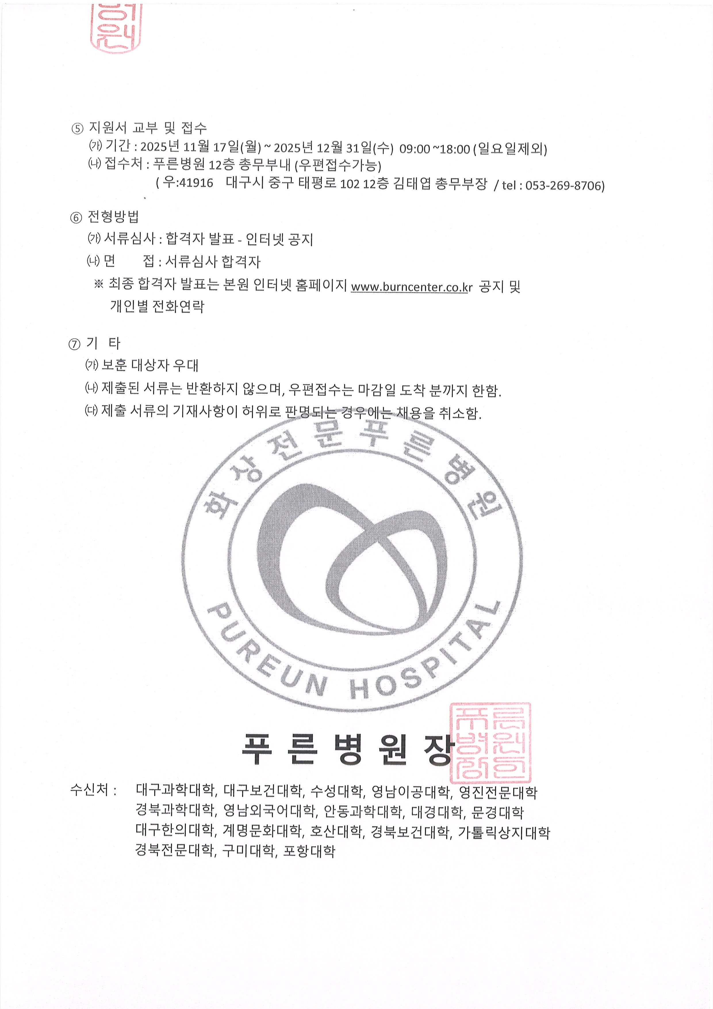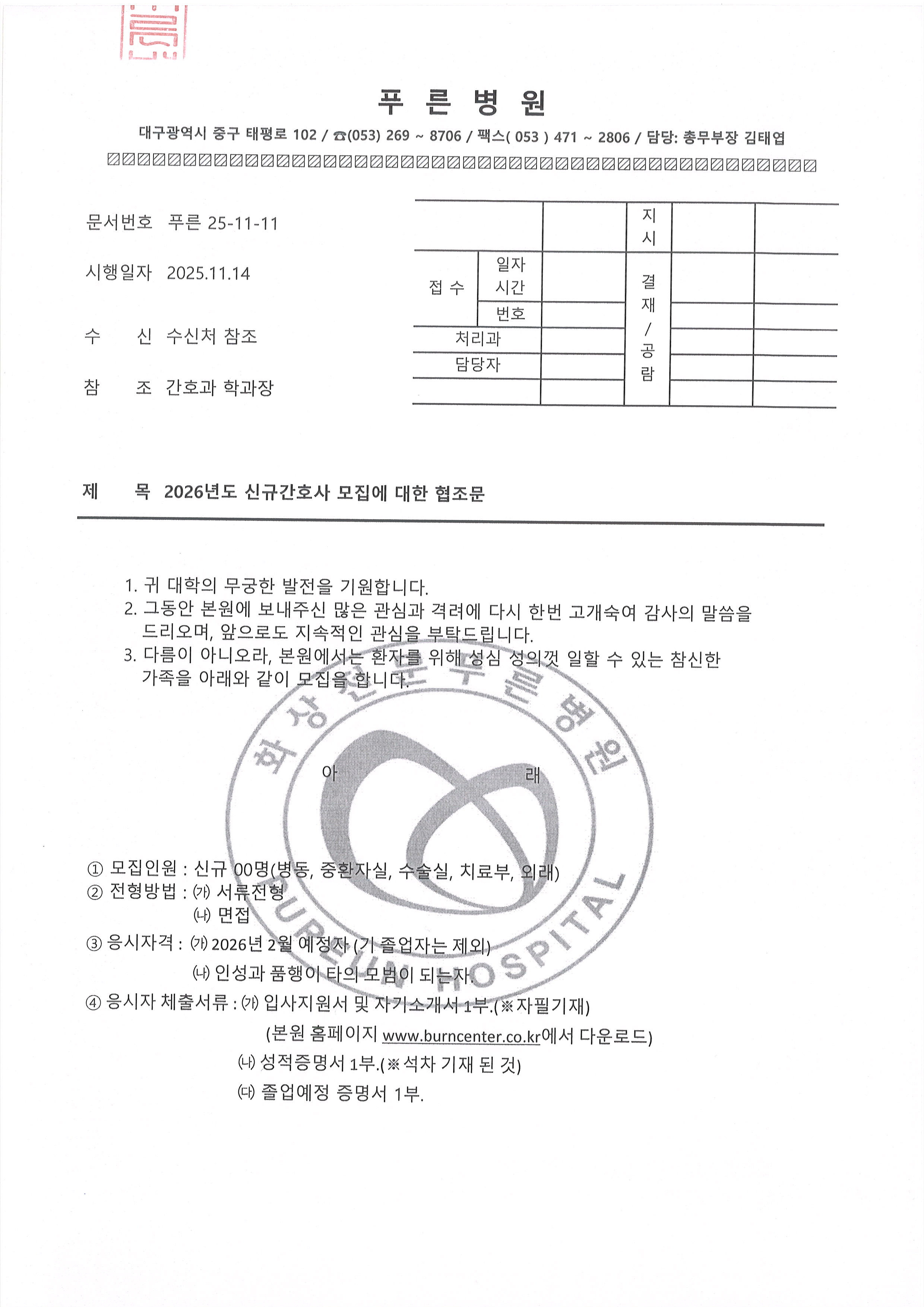 푸른병원 신규간호사 채용공고 작성자이애라(09)|작성시간25.11.19|조회수197 목록 댓글 0 글자크기 작게가 글자크기 크게가 다음검색 현재 게시글 추가 기능 열기 북마크 신고 센터로 신고 댓글 댓글 0 댓글쓰기 답글쓰기 댓글 리스트